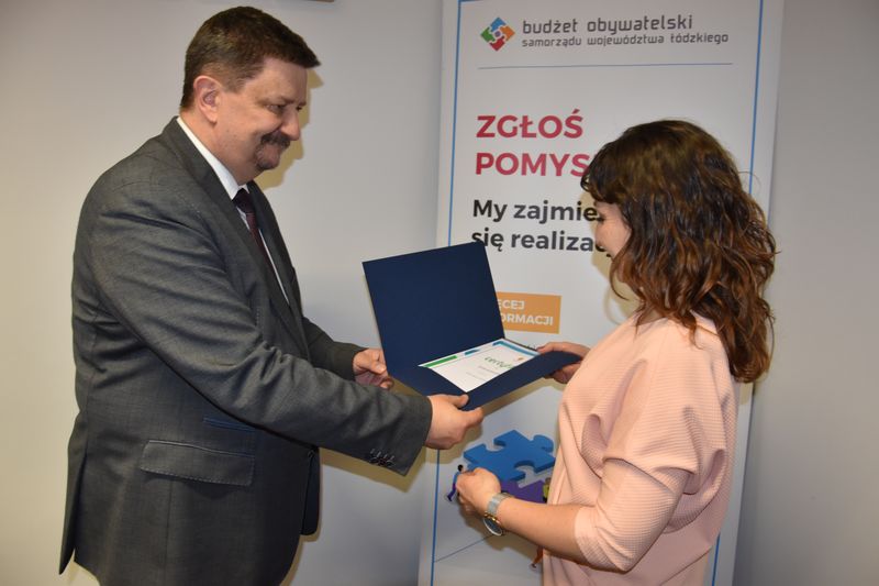 Kilkudziesięciu pomysłodawców, których zadania zgłoszone do Budżetu Obywatelskiego Samorządu Województwa Łódzkiego (BOWŁ) na rok 2019 zwyciężyły w ubiegłorocznym głosowaniu, odebrało dziś (15 kwietnia) z rąk marszałka województwa łódzkiego, Grzegorza Schreibera specjalne certyfikaty, potwierdzające ich twórcze zaangażowanie w kształtowanie wydatków naszego regionu.
